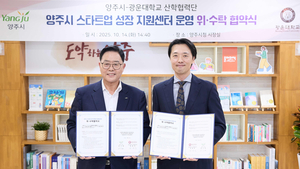 [ 경기주간신문 = 정성경 기자 ] 양주시가 지난 14일 양주시청 상황실에서 광운대학교 산학협력단과 「양주시 스타트업 성장지원센터」 위‧수탁 협약을 체결했다. 이번 협약은 창업지원·기업유치·산업연계 정책의 핵심 거점이 될 양주시 성장지원센터의 운영 전반을 광운대학교 산학협력단에 위탁해, 체계적이고 지속 가능한 창업지원 기반을 마련하기 위한 것이다. 시는 이번 협약을 계기로 ‘양주형 창업생태계 조성’을 본격화하고, ▲창업기업 발굴 및 육성 ▲창업문화 확산 ▲투자유치 등 창업-성장-투자의 선순환 구조를 구축할 계획이다. 또한 성장지원센터를 통해 ▲창업 초기기업의 입주 및 성장 프로그램 운영, ▲스타트업 성장기반 안정화 및 투자유치 지원, ▲대학 및 지역자원과의 효율적 연계 등을 추진한다. 특히, 경기양주테크노밸리 등 산업단지 입주기업의 기술혁신 수요와 창업기업의 아이디어를 매칭해 기술실증(테스트베드)으로 이어지는 지역 산업혁신 생태계를 조성할 예정이다. 이를 통해 창업기업이 산업단지로 성장 진출하고, 산업단지가 다시 창업의 터전이 되는 ‘창업–기업유치–산업성장’의 선순환 구조를 실현하겠다는 구상이다. 강수현 양주시장은 “이번 협약은 양주시가 창업과 산업이 함께