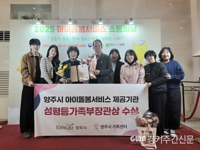 [ 경기주간신문 = 정성경 기자 ] 양주시가 지난 10일 성평등가족부가 실시한 ‘2025년 아이돌봄서비스 제공기관 평가’에서 양주시 가족센터가 우수기관으로 선정돼 성평등가족부 장관상을 수상했다고 전했다.