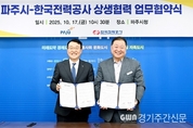 [ 경기주간신문 = 정성경 기자 ] 파주시와 한국전력공사는 지난 10월 17일 대규모 개발사업의 성공적인 추진과 안정적인 전력 공급을 위한 상생 협력 업무협약을 체결했다고 밝혔다. 이번 협약식에는 김경일 파주시장과 서철수 한국전력공사 부사장을 비롯해, 한국전력공사 경기북부본부장·경인건설본부장 등 양 기관 관계자들이 참석했다. 이번 협약을 통해 양 기관은 파주시 대규모 개발사업 추진 시 발생할 수 있는 전력 공급 문제를 해결하고 최적의 전력 공급 구축 계획을 사전에 협의하는 등 긴밀한 협력체계를 구축하기로 했다. 이를 통해 파주시의 대규모 개발 사업이 성공적으로 추진되고, 적기에 안정적인 전력 설비가 구축될 전망이다. 김경일 파주시장은 “파주시가 100만 자족도시로 도약하기 위한 핵심사업인 경제자유구역과 평화경제특구의 성공적인 추진을 위해서는 안정적인 전력 기반 시설 확충이 필수적이므로 한국전력공사와 함께 긴밀하게 협력할 것”이라고 밝혔다. 이번 업무협약으로 양 기관은 상호 신뢰와 협력을 바탕으로 지역 발전에 기여하고, 대규모 개발사업 추진에 필요한 전력 공급을 체계적으로 지원하기 위한 중요한 출발점이 될 것으로 기대된다.