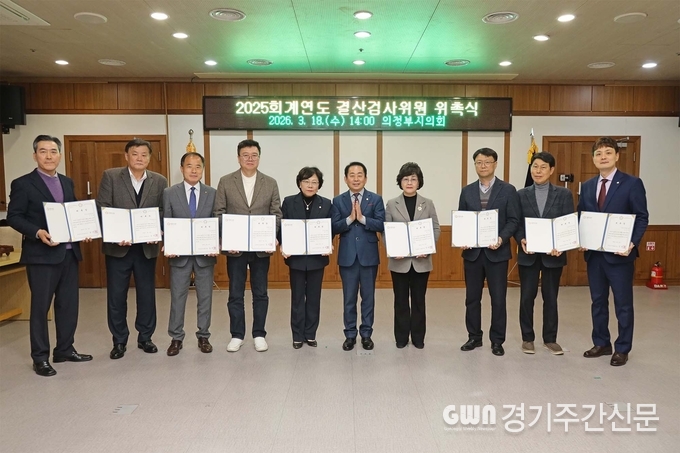 [ 경기주간신문 = 정성경 기자 ] 의정부시의회(의장 김연균)는 3월 18일 의정부시의회 의원회의실에서 「2025회계연도 결산검사위원 위촉식」을 개최하고 결산검사위원 10명을 위촉했다.
