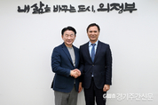 [ 경기주간신문 = 정성경 기자 ] 의정부시는 3월 17일 대만의 산업용 러기드 컴퓨팅 솔루션 개발 및 제조 기업인 ‘윈메이트(Winmate Inc.)’의 켄 루(Ken Lu) 회장 등 기업 관계자가 의정부시를 방문해 향후 협력 가능성을 논의하고 나리벡시티 지식산업센터 부지를 시찰했다고 밝혔다. 이번 방문은 윈메이트가 한국 내 지사 설립과 제품 제조 공정의 현지화를 위해 국내 여러 후보지를 검토하던 중 의정부시의 입지 여건에 관심을 보이며 추진됐다. 시와 수차례 실무 협의를 거쳐 회장이 투자 환경을 직접 확인하기 위해 방문했다. 시와 윈메이트는 그동안 실무 협의를 통해 부지 현황을 공유하고, 기업 유치를 위한 지원 방안 등을 긴밀히 논의해 왔다. 이날 일정은 그간의 협의를 바탕으로 시장 면담과 투자 후보지 현장 실사 순으로 진행됐다. 시는 차담회를 통해 인허가 PM(Project Manager) 지원 제도(전담 지원 제도)와 부지 협의 등 시 차원의 지원 방안을 설명했다. 이어 켄 루 회장 일행은 나리벡시티 지식산업센터 부지를 직접 둘러보며, 해당 입지가 윈메이트의 향후 연구개발(R&D)과 제조 거점으로서 가진 잠재력을 면밀히 검토했다. 시 관계자는