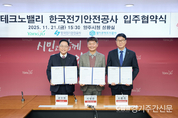 [ 경기주간신문 = 정성경 기자 ] 양주시가 21일 시청 상황실에서 한국전기안전공사, 경기주택도시공사(GH)와 한국전기안전공사 경기북부본부의 경기양주 테크노밸리 입주를 위한 3자 협약을 체결했다. 이날 협약식에는 강수현 양주시장, GH 오완석 균형발전본부장, 한국전기안전공사 서영환 경영지원처장을 비롯한 관계자 10여 명이 참석해, 경기양주 테크노밸리를 경기북부 신산업 생태계의 핵심 거점으로 육성해 나가겠다는 의지를 함께했다. 경기양주 테크노밸리는 양주시 마전동 일원에 양주시·GH·경기도가 공동으로 조성 중인 21만8천㎡(약 7만 평) 규모의 첨단산업단지로, 첨단제조업 및 ICT 산업을 기반으로 한 직‧주‧락‧학(職住樂學) 복합 인프라를 갖춘 경기북부 혁신거점으로 조성되고 있다. 전기·에너지 안전 분야 대표 공공기관인 한국전기안전공사는 AI·빅데이터 기반 사고예방 시스템을 도입해 첨단 안전관리 혁신을 추진하고 있으며, 신재생에너지·ESS 등 미래형 에너지 분야의 안전 기반 구축을 선도해 왔다. 양주시는 이번 입주를 통해 경기양주 테크노밸리가 안전과 혁신이 결합된 스마트 산업단지로 한 단계 도약할 것으로 기대하고 있다. 협약에 따라 세 기관은 △ 산업단지 전기안