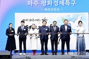 [ 경기주간신문 = 정성경 기자 ] 파주시가 평화경제특구 유치를 향한 염원과 의지를 대내외에 알리는 '평화경제특구 비전 선포식'을 지난 7일 개최했다. 파주시민회관 대공연장에서 개최된 이번 행사는 김경일 파주시장을 비롯해 주요 내빈과 평화경제특구 유치 시민추진단, 시민 등 200여 명이 참석한 가운데 진행됐다. 행사는 파주시립예술단의 식전 공연을 시작으로, 개회식, 평화경제특구 비전 발표, 시민추진단 2기 위촉식 순으로 이어졌다. 김경일 파주시장은 비전 발표를 통해 평화를 기반으로 한 경제 성장과 신산업 생태계 구축을 목표로 하는 파주 평화경제특구의 추진 방향을 제시했다. 특히 이날 행사에서는 지난해 12월 구성된 ‘평화경제특구 유치 시민추진단 2기’ 위촉식이 함께 열려, 민관이 함께하는 평화경제특구 파주 유치 추진 체계의 본격 가동을 알렸다. 행사의 대미로는 멋글씨 예술가(캘리그라퍼) 이화선 작가가 참여한 붓글씨 시연이 진행됐으며, 김경일 파주시장과 내빈, 시민추진단 대표가 함께한 장붓 시연을 통해 ‘평화경제특구 파주’ 유치에 대한 강한 의지를 상징적으로 표현하며 현장의 열기를 더했다. 김경일 파주시장은 “평화경제특구는 남북경제협력의 열쇠이자, 100만 자